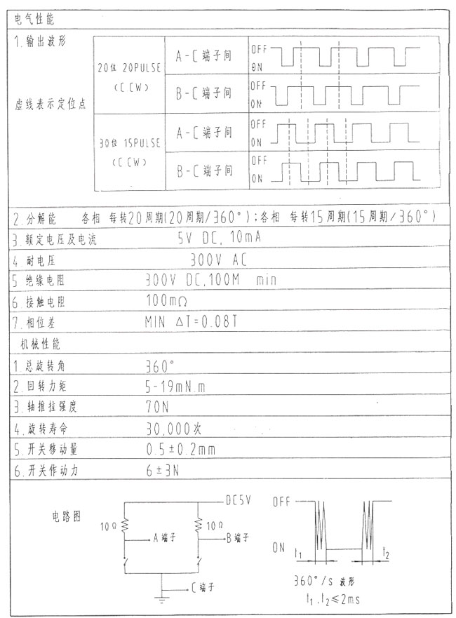 5腳旋轉(zhuǎn)編碼器具有左轉(zhuǎn),右轉(zhuǎn),按下三個功能。2個腳一側(cè)的為中間軸型按壓的開關(guān)接線腳。3個腳一側(cè)的用途分別為中間引腳為接地作用,傍邊的兩個引腳為上拉電阻,進(jìn)行旋轉(zhuǎn)產(chǎn)生脈沖信號輸出。而在編程時需要判斷左轉(zhuǎn)與右轉(zhuǎn),這一塊需要準(zhǔn)備一個示波器,以示波器兩個輸出腳左轉(zhuǎn)和右轉(zhuǎn)時的信號相位差來判斷。當(dāng)兩個引腳中一個輸出為低電平時,另一個輸出就出現(xiàn)一個高電平,這時開關(guān)就是向順時針旋轉(zhuǎn),反之就一定是逆時針方向旋轉(zhuǎn)。以上就是5腳旋轉(zhuǎn)編碼器大家需要了解的調(diào)節(jié)方法。