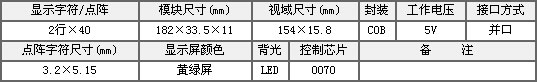 - 名稱(chēng):OCMC2X40 黃綠屏5V