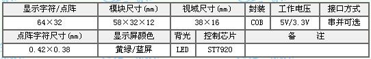 - 描述:顯示點陣:64X32 品牌:金鵬 帶中文字庫,模塊尺寸:58X32X12 視域尺寸:38X16 控制IC:7920,封裝COB 本液晶詳細資料在內頁