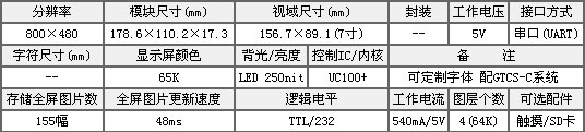 - 描述:顯示點陣:800X480,品牌:金鵬 TFT彩屏,模塊尺寸:178.6X110.2X17.3 視域尺寸:156.7X89.1