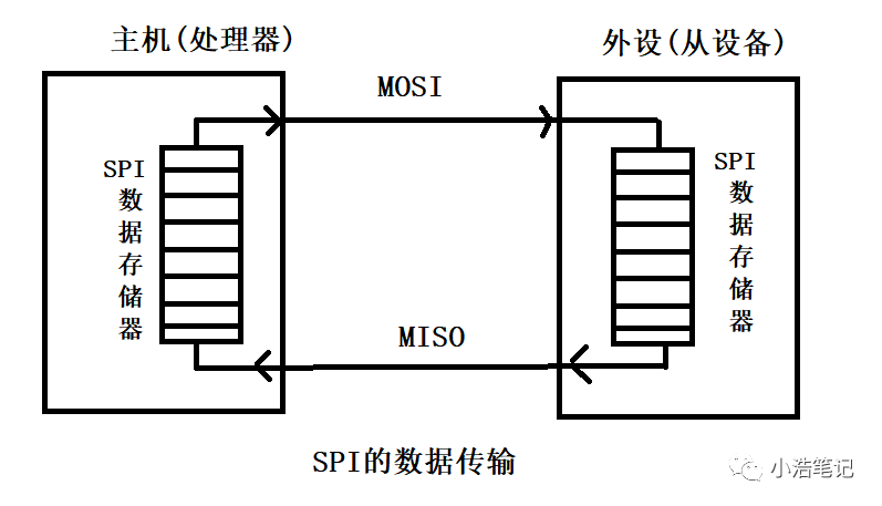 主機和外設都包含一個串行移位寄存器,主機通過它的SPI串行寄存器寫入一個字節(jié)來發(fā)起一次傳輸。寄存器是通過MOSI信號線將字節(jié)傳送給外設,外設也將自己的移位寄存器中的內(nèi)容通過MISO信號線返回給主機。這樣,兩個移位寄存器中的內(nèi)容就被交換了。外設的寫操作和讀操作是同步完成的,因此SPI成為一個很有效的協(xié)議。