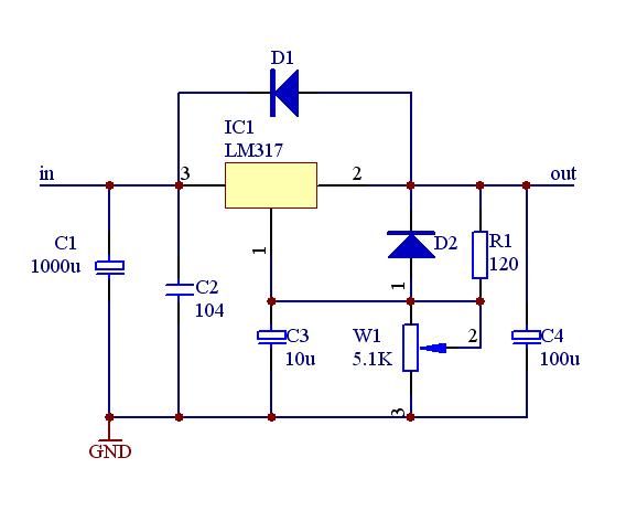 這個(gè)電路是LM317最基本的應(yīng)用電路,在使用的過(guò)程中要注意最小壓差不得小于4V和最大壓差不得大于37V,小于4V電路將不工作,大于37V將導(dǎo)致集成電路的損壞。