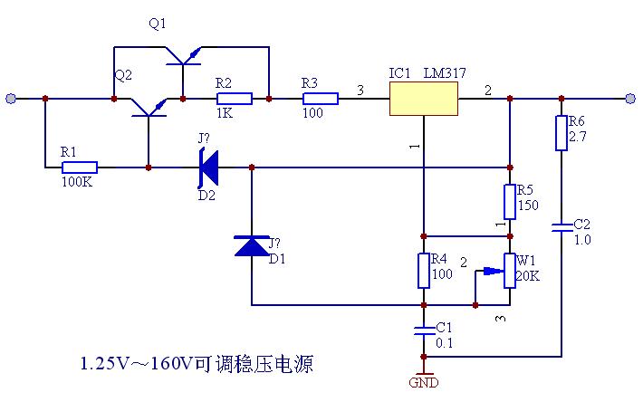 1.25~160連續(xù)可調(diào)的集成穩(wěn)壓電源。